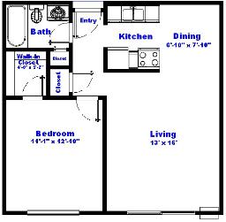 1 Bedroom - 640 Square Feet